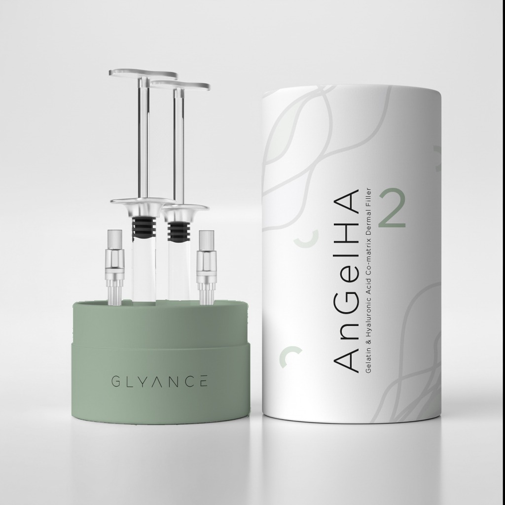 AnGelHA is an innovative biostimulating dermal filler combining 20 mg/mL Hyaluronic Acid and 30 mg/mL Gelatin in a unique co-matrix structure. This synergistic formulation enhances fibroblast activity, promoting collagen and elastin production while delivering immediate volume and long-term regeneration. As a true monophasic, non-particulate gel, AnGelHA enables safe, full-face treatment—including delicate areas such as lips and periocular regions—with full reversibility.